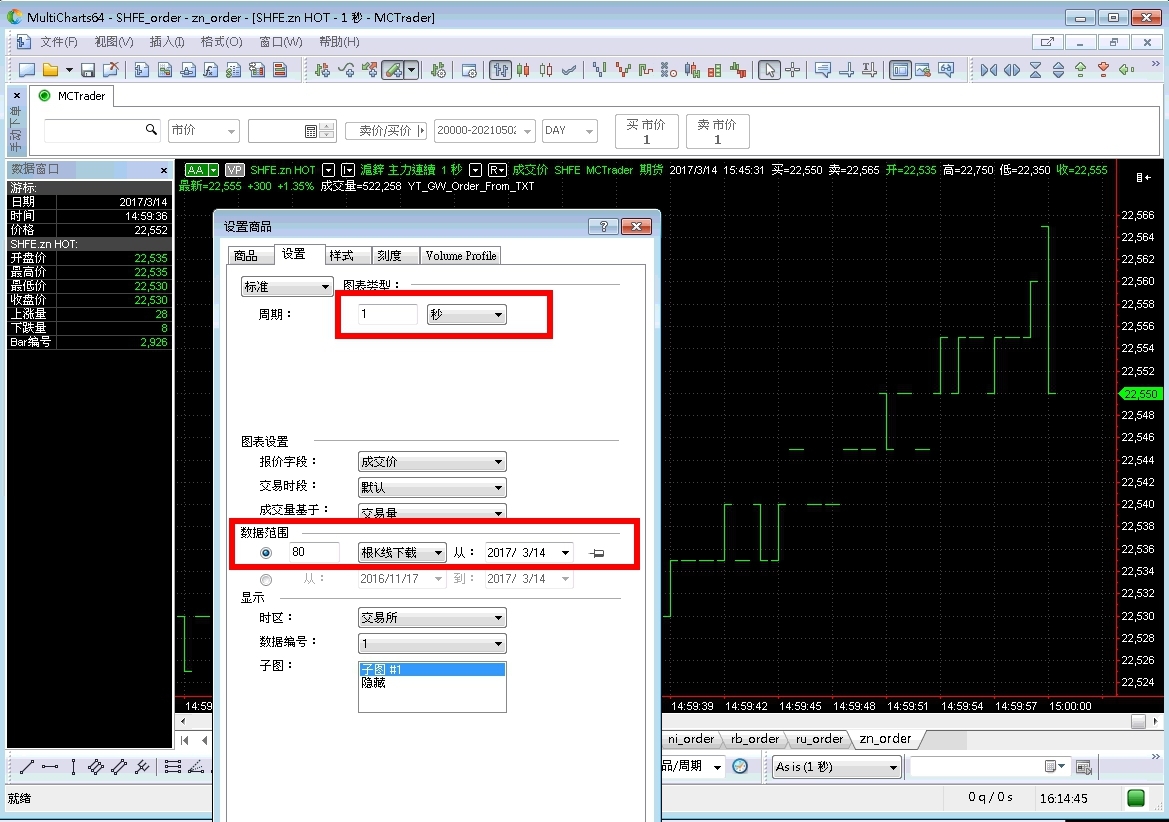 - 請開啟你想要下單的商品,周期使用 1秒鐘,數據範圍照預設使用 80即可