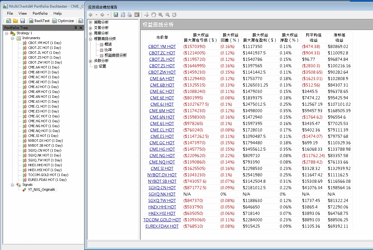 所有商品所有策略都是一樣的分析方法,再透過大量圖表的排序探勘與訊號品質閥值設定,將整體組合品質再往上拉