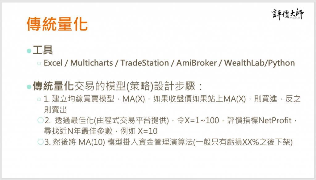 在開始今天的主題分享之前,我們先來回想一下,我們一般在傳統量化交易大概都是怎麼開始入這個門的。