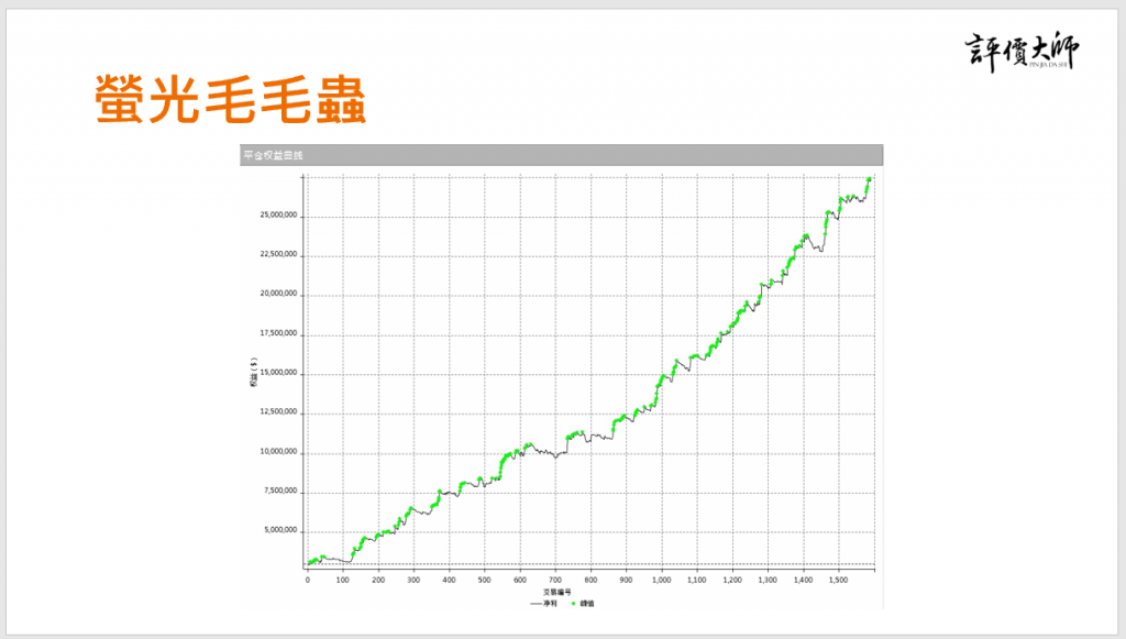 在經過了各種回測最佳化之後,我們終於弄出了一條像樣的螢光毛毛蟲