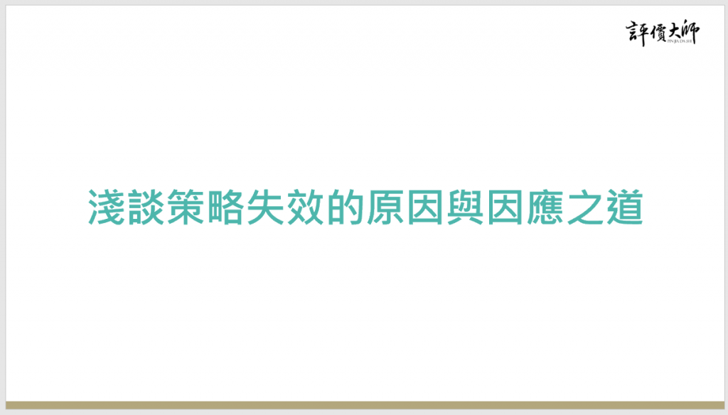 其實可怕的不是策略失效,而是策略失效了,我們渾然不知,或是不知道該怎麼處理