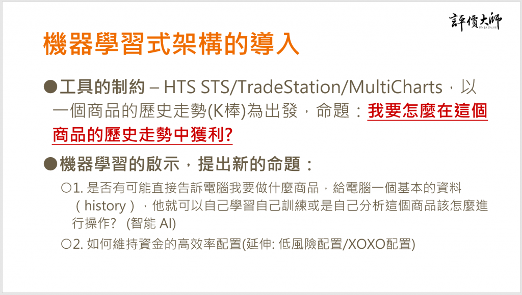 1. 是否有可能直接告訴電腦我要做什麼商品,給電腦一個基本的資料(history),他就可以自己學習自己訓練或是自己分析這個商品該怎麼進行操作?   (智能 AI)