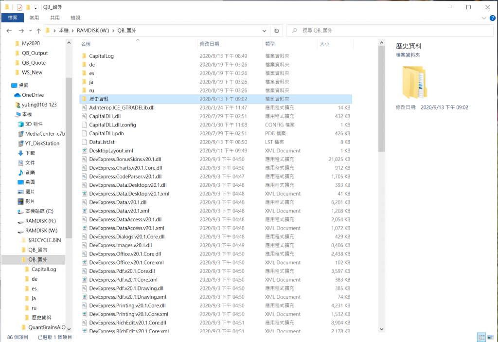 然後我們可以在 QuantBrains 平台資料夾中的”歷史資料”資料夾中找到已下載完成的 BackAdjusted 歷史資料