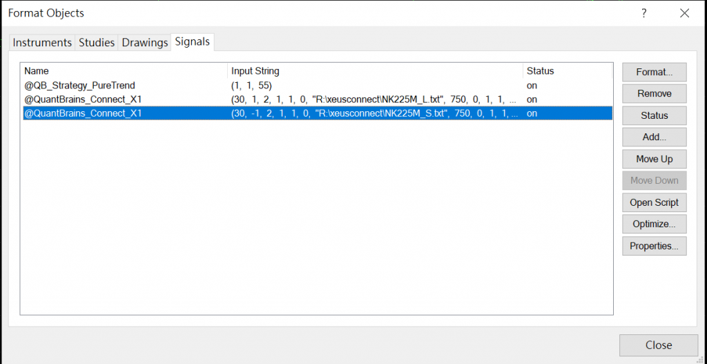 輸出格式為開放式的設計,可依據自己的需求進行設定。輸出後即可透過市面上的下單機進行下單。個人推薦使用目前使用目前使用人數最多最穩定最快速的下單大師進行下單,不論是國內的券商或是很多人下海期喜愛的IB都有非常完整的支援。