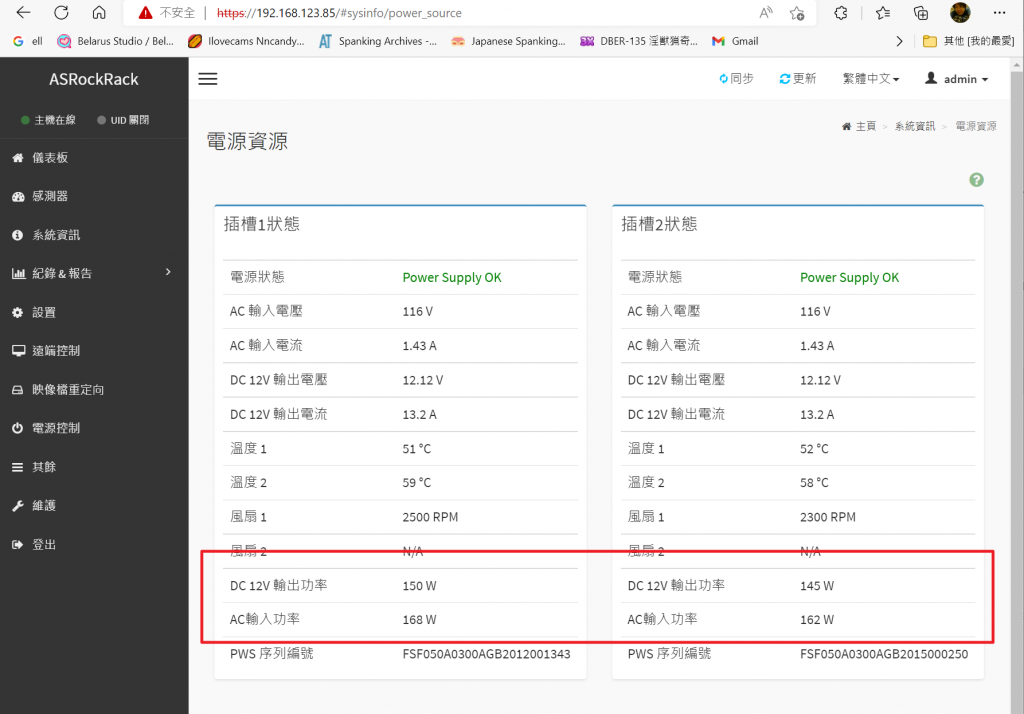 一個電源籠子加”兩個”1200W電源可能只需要整套RMB 700就可以買到(或買二手機箱一般都像上面講的直接就有隨機白菜價,單顆替換的1200w電源則只要RMB200以內就可以買到,單顆550W/750W甚至只需要RMB50塊100塊,一把青菜價也非常夠用),雖然說是二手的,但其實品相看起來也大多很新(可能都放無塵機房吹冷氣),比消費機買個1300W的電源動不動就要八千塊台票便宜多了,功能與品質卻更好,不只更省電還支援電源負載平衡,當兩個電源都是好的時候,負載會進行平衡,壽命更久,一顆掛點的時候,電腦也會穩穩跑不斷電(冗餘設計),模組設計替換方便支援熱插拔。管理也更智能,進入IPMI一看就知道電源的狀況。