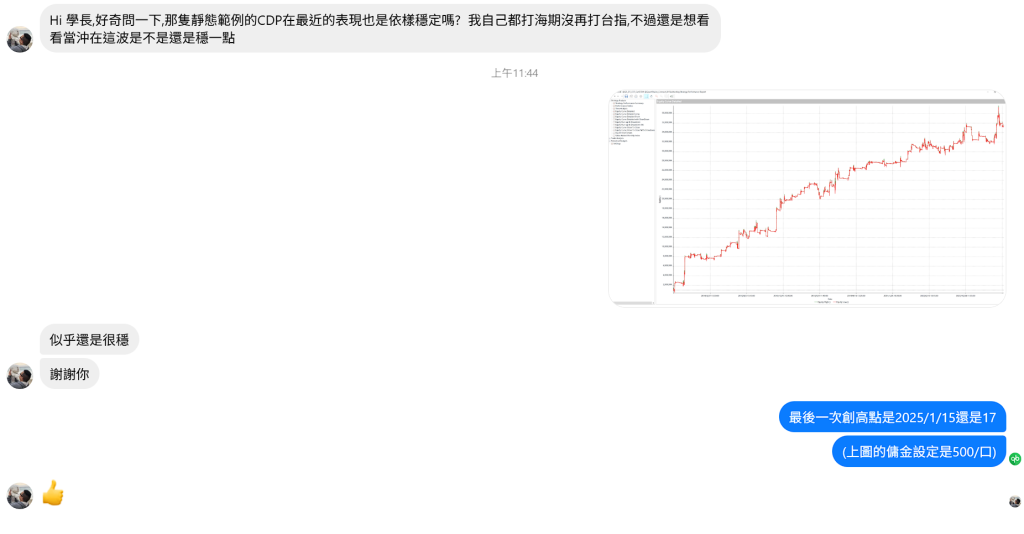 [FB閒聊紀錄]靜態回測範例-當沖追蹤 yuting0103 2025-04-10 發表評論 於 [FB閒聊紀錄]靜態回測範例-當沖追蹤 發布於 未分類 分享: XFacebookPinterestLinkedin Facebook 做程式交易十幾年,大多是做留倉波段策略。但策略組裡運行相對穩定的策略竟然是當時示範靜態回測範例時,應同學敲碗臨時寫的當沖策略,幾年過去了也還算活的不錯 #靜態回測範例(部位管理模組) 接續: 靜態回測範例應用–當沖篇 – 量化思維 QuantBrains 作者:yuting0103